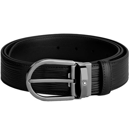 Черный кожаный ремень с подковообразной пряжкой 35мм от магазина премиальных ручек Premium Pens в Смоленске.